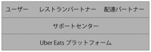 この三者とUber Eatsプラットフォームの間にサポートセンター(サポートチーム)が入ります。